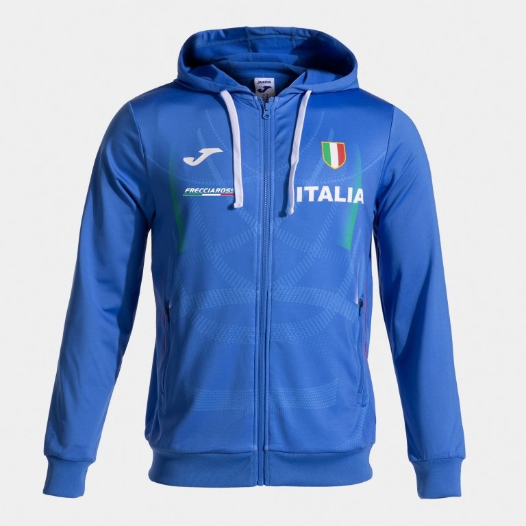 D'altra parte, incorpora una stampa accattivante che disegna sagome sul colore principale, dando un tocco diverso e moderno alla felpa della Federazione Italiana di Atletica Leggera. Sulla schiena, i colori della bandiera italiana sono sublimati dall'effetto ottico. Sul davanti, ha un'altra stampa personalizzata ITALIA e il logo Joma.