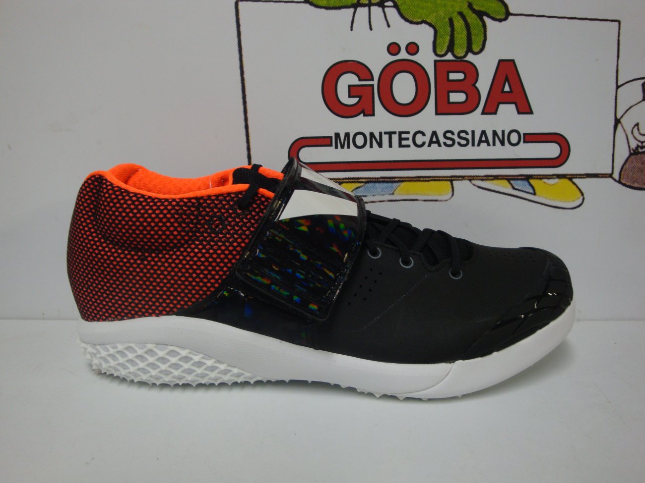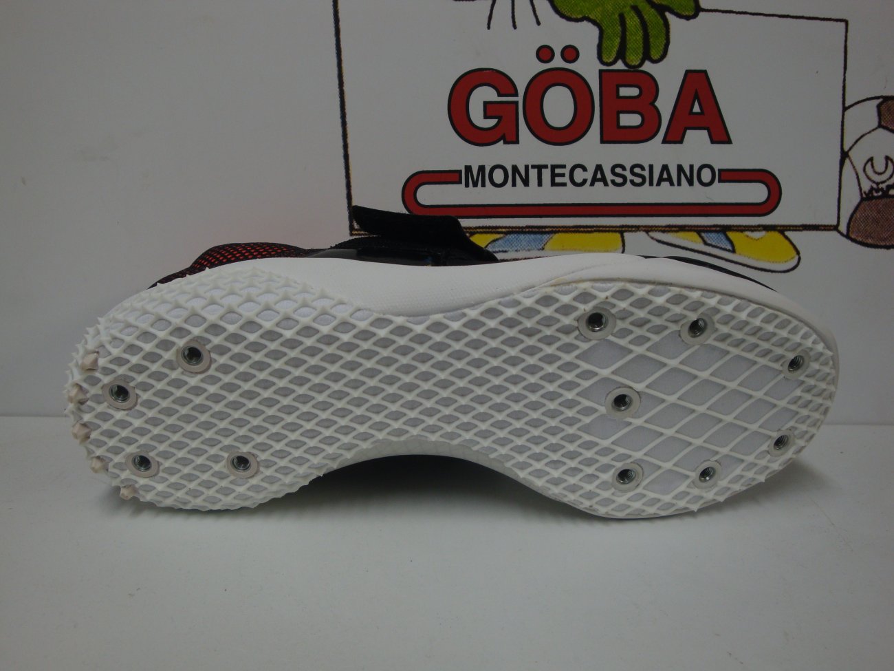 Tomaia in materiale sintetico con linguetta in mesh. Allacciatura tradizionale,supportata da una ampia fascia in Velcro. Intersuola in EVA preformata. Suola composta da inserti antiscivolo in TPU,con 11 alloggiamenti per i chiodi (7 nell'avampiede e 4 nel tallone). Scarpa destinata a specialisti che praticano giavellotto ad alto livello tecnico e professionisti,è un modello solidi e ben sostenuto in tutte le fasi d'appoggio.