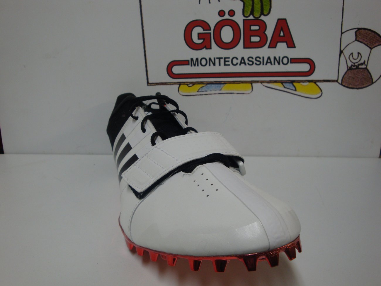Allacciatura tradizionale supportata con fascia in velcro. Plantare in EVA. Intersuola in Eva preformata. Suola in TPU a tutta lunghezza con 6 alloggiamenti per i chiodi. IDEALE PER GARE IN RETTILINEO (100 m) E' DEDICATA A SPRINTER DI ALTO LIVELLO TECNICO PARTICOLARMENTE ESIGENTI.
