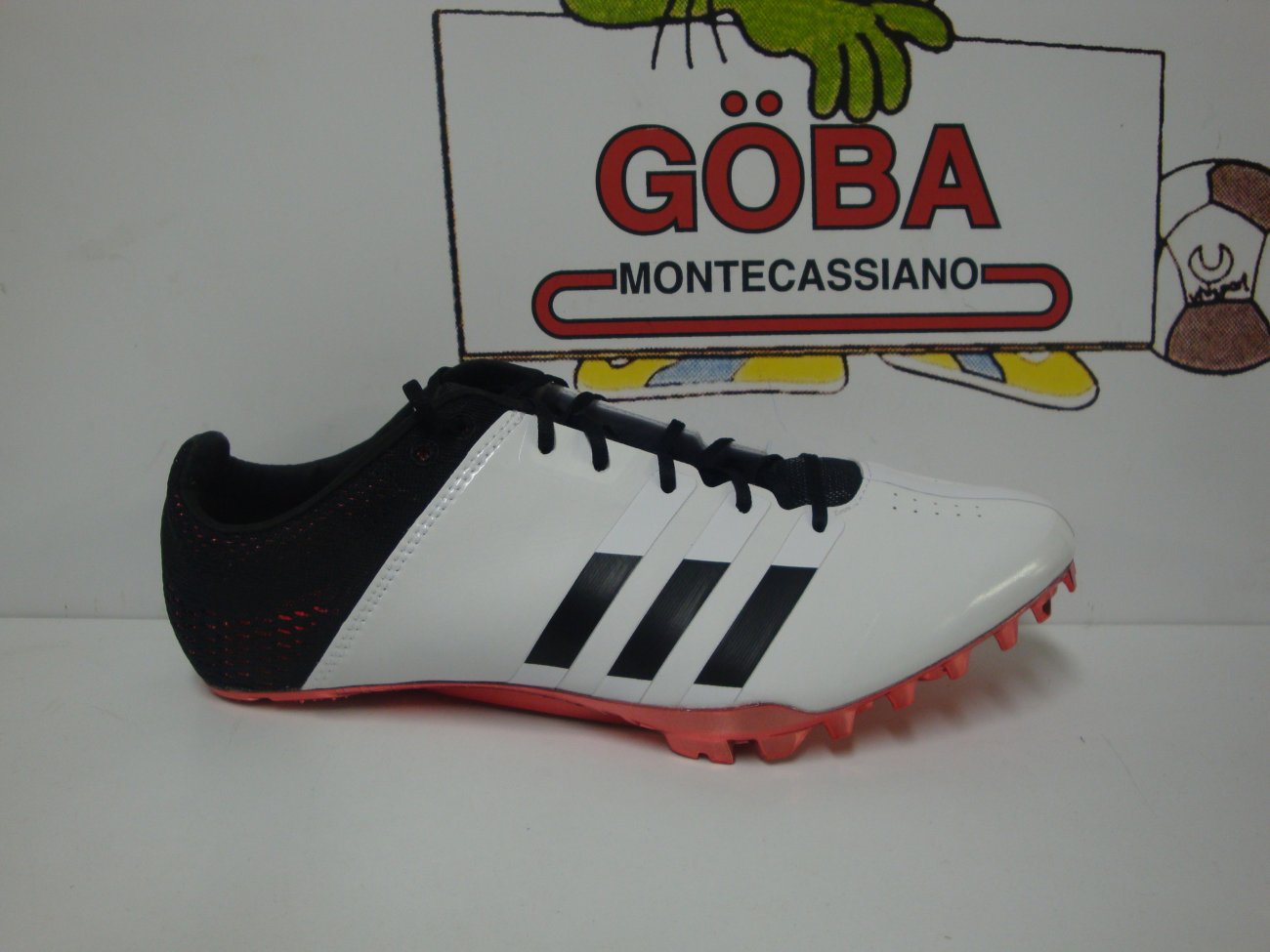 .Tomaia realizzata in pelle sintetica e mesh con rifiniture in microfibra. Plantare in EVA. Intersuola in Eva preformata. Suola in TPU a tutta lunghezza con 6 alloggiamenti per i chiodi. IDEALE PER GARE IN RETTILINEO (100 m) E' DEDICATA A SPRINTER DI ALTO LIVELLO TECNICO PARTICOLARMENTE ESIGENTI.
