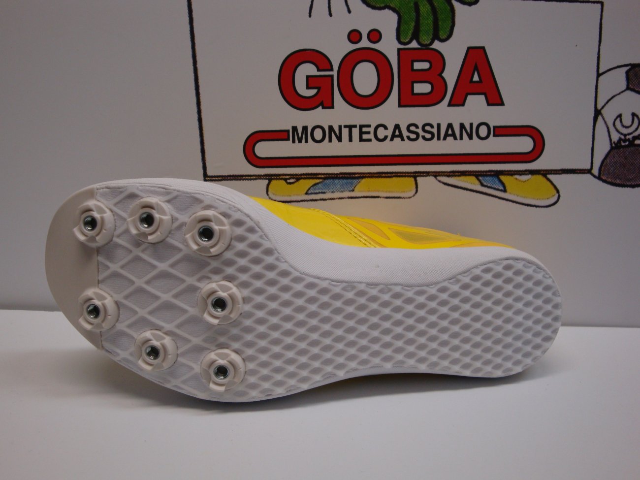 Tomaia in pelle sintetica(anteriore) e mesh con rifiniture in sintetico(posteriore). Allacciatura tradizionale. Intersuola in EVA preformata a doppia densit??. Suola composta da inserti antiscivolo in TPU,con 7 alloggiamenti per i chiodi. Modello destinato ad atleti professionisti o di alto livello tecnico è una calzatura specifica per gareggiare nel salto in lungo.