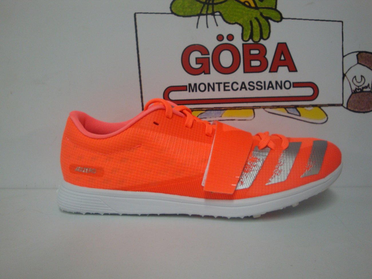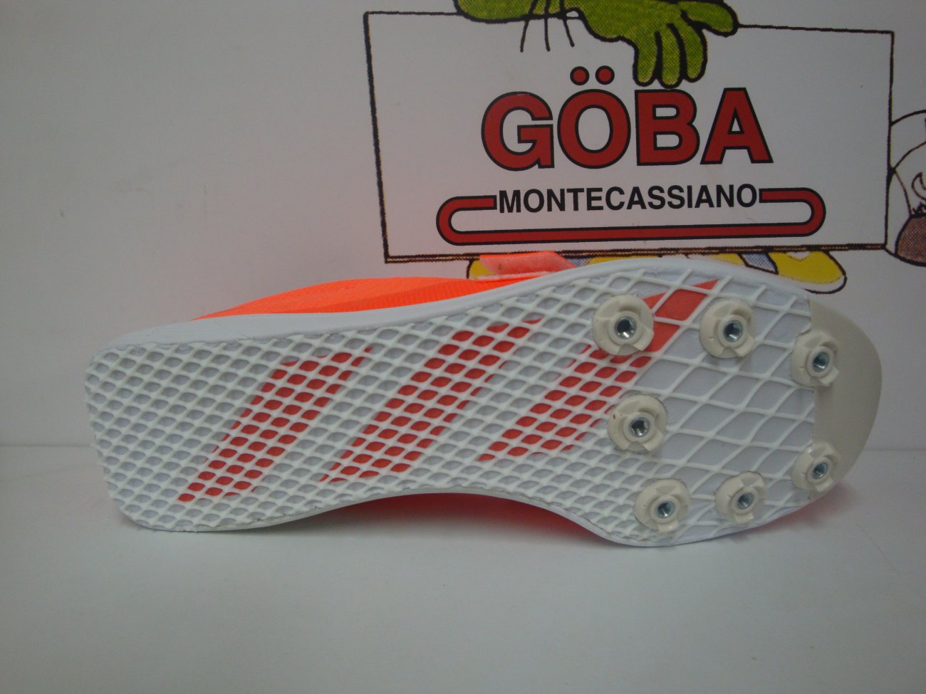 Tomaia in pelle sintetica con i in mesh. Allacciatura tradizionale. Intersuola in EVA con tallone svasato,o ammortizzante adiPRENE+ a tutta lunghezza e sostegno mediale Pro-Moderetor.. Suola composta da i antiscivolo in TPU,con 7 alloggiamenti per i chiodi. Scarpa destinata ad atleti di alto livello e' una chiodata dal design aerodinamico,in grado di offrire una buona reattivita',grazie alla giusta reattivita' della suola.