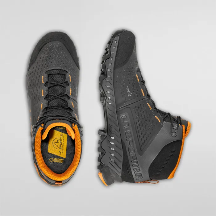 Scarponcino fast hiking di taglio mid per l?escursionismo veloce. Adotta soluzioni che sono parte del DNA mountain La Sportiva combinandole a tecnologie e concetti di derivazione Mountain Running per un prodotto versatile, impermeabile e super traspirante grazie alla nuova tecnologia GORE-TEX SURROUND.