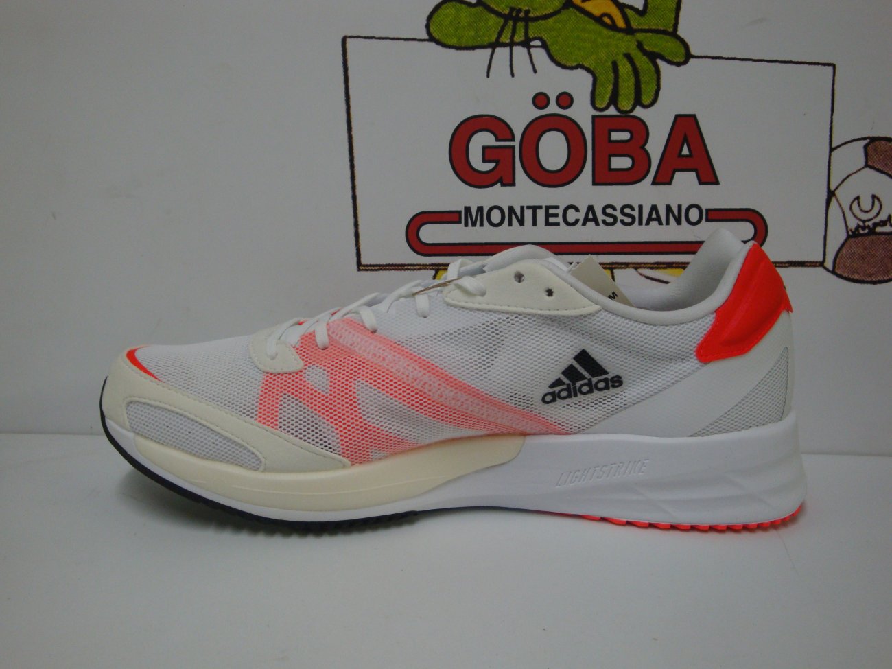 Il duro lavoro fatto negli allenamenti a intervalli, nelle corse veloci e nelle gelide sessioni mattutine ha dato i suoi frutti. Ti sei guadagnato un posto sulla linea di partenza. Non ti resta che indossare queste scarpe da running adidas dalla calzata ampia e dare il massimo fino all'ultimo chilometro. La tomaia in mesh è così leggera che ti sembrerà di volare, mentre l'ammortizzazione Lightstrike assicura reattività e un ritorno di energia straordinario. Questo modello è stato prodotto con materiali riciclati ad alte prestazioni Primegreen. Il 50% della tomaia è realizzato con materiali riciclati e non è stato utilizzato poliestere vergine.