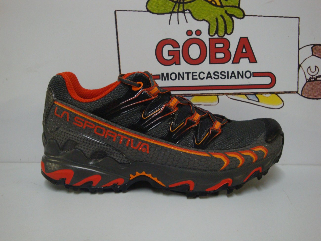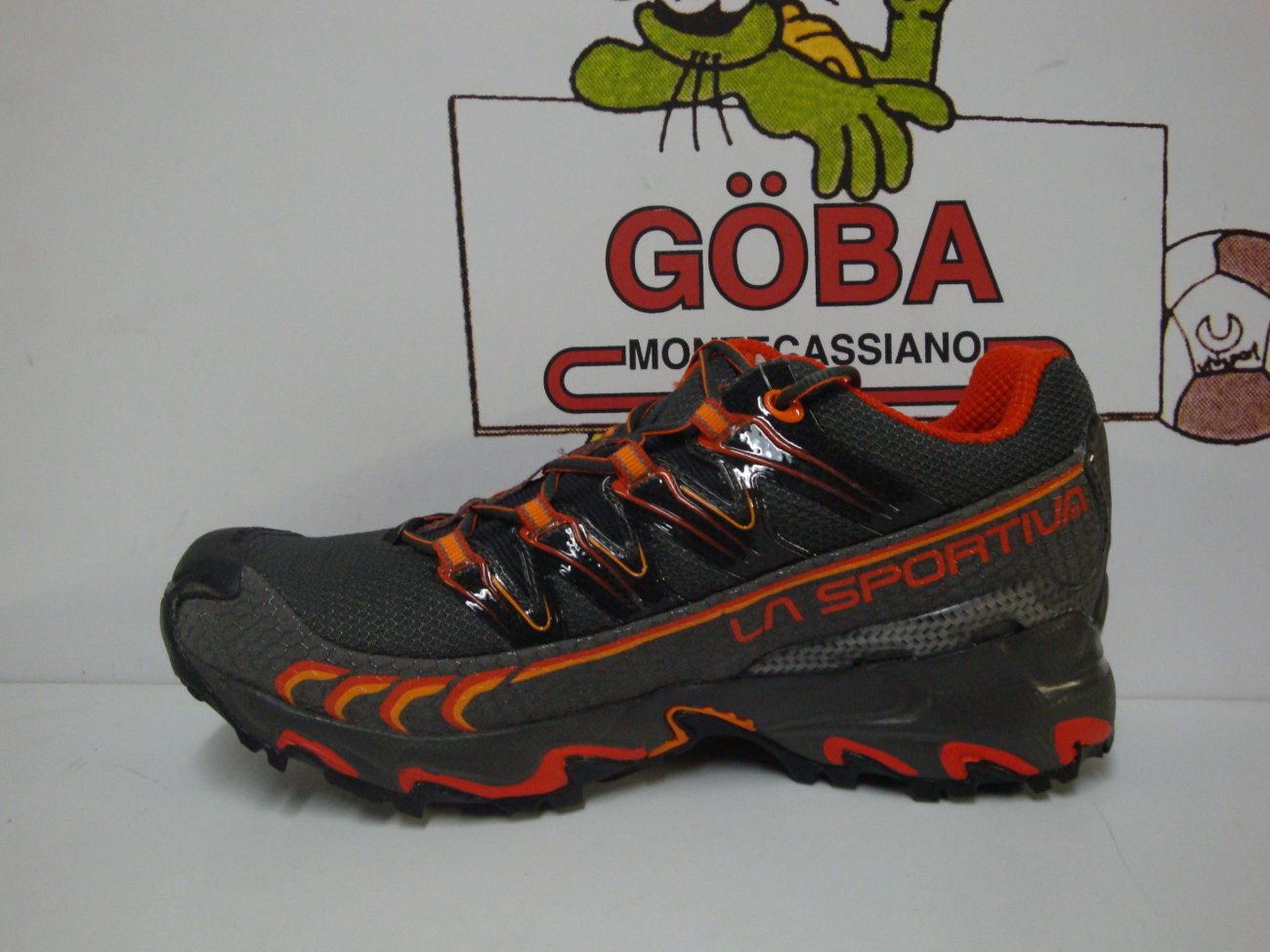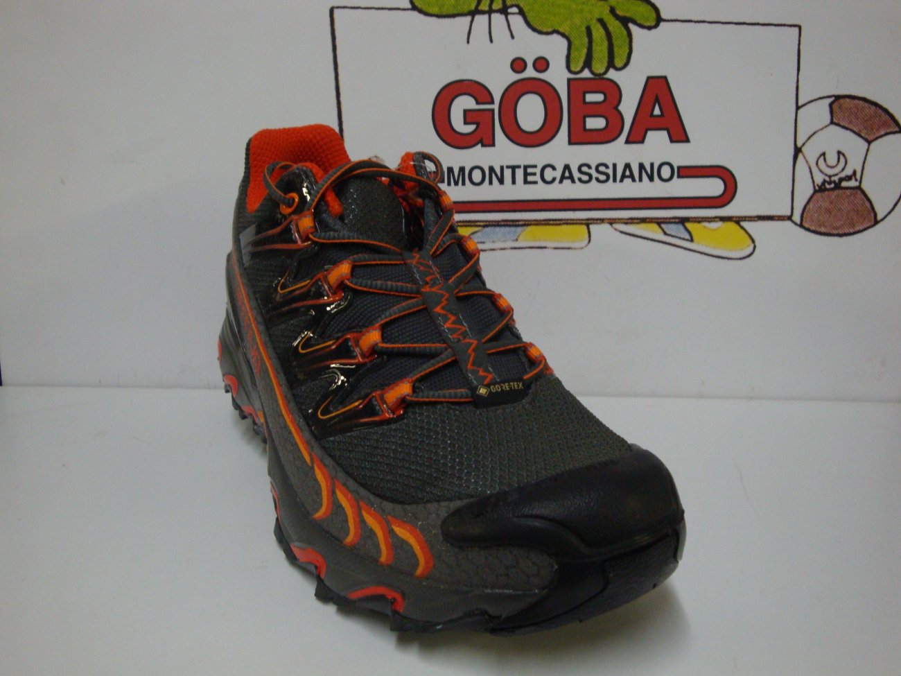 Calzatura in membrana Gore-Tex sviluppata per utilizzi invernali su percorsi off-road di lunga distanza, competizioni ultra-marathon e sessioni di allenamento prolungate. La tomaia ? in mesh anti abrasione traspirante e water repellent, la fodera ? in membrana Gore-Tex Extended Comfort a garanzia di impermeabilit? e traspirabilit?. Il sistema di allacciatura ? integrato alla tomaia a mezzo di fettucce cucite sul tessuto elastico interno e con rinforzi in alta frequenza sul mesh esterno: questo permette di ripartire la tensione dell?allacciatura su tutta la tomaia ed avvolgere meglio il piede per un perfetto comfort di calzata. Ultra Raptor GTX unisce i vantaggi in termini di performance di una costruzione contenitiva a quelli di comfort derivati da una forma comoda e con pianta larga. Il risultato ? un prodotto indossabile per molte ore consecutive ed adatto per utilizzo endurance su qualsiasi tipo di terreno off-road nei mesi invernali o in situazioni di elevata umidit?, grazie alle doti di impermeabilit? della fodera Gore-Tex. Suola ad alta aderenza realizzata in mescola La Sportiva FriXion XF.