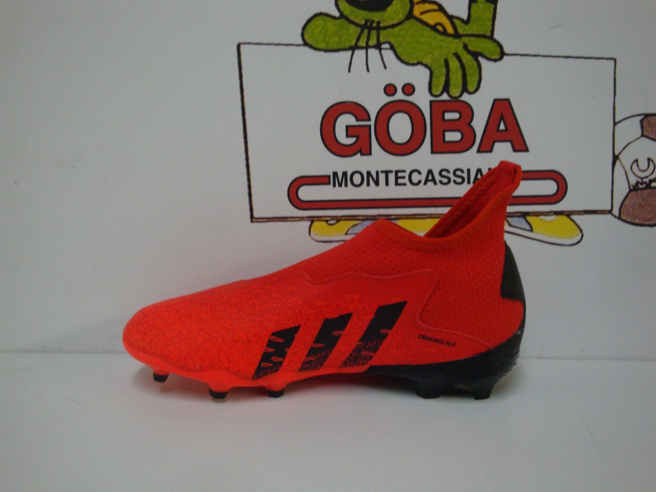 Morbida tomaia in tessuto rivestito rende queste scarpe da calcio junior confortevoli e resistenti. Il design mid-cut e senza lacci garantisce un supporto ottimale delle caviglie. L'ampia superficie con elementi Demonscale stampati in 3D ti permette di controllare il pallone con una precisione micidiale.