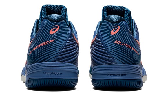 Il modello SOLUTION SPEED™ FF 2 Clay è dotato di una applicazione in PU (poliuretano) sulla tomaia, per migliorare sostegno, flessibilità e calzata.