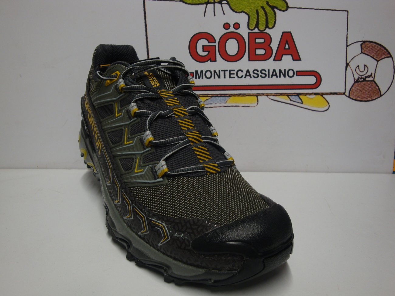 Calzatura in membrana Gore-Tex sviluppata per utilizzi invernali su percorsi off-road di lunga distanza, competizioni ultra-marathon e sessioni di allenamento prolungate. La tomaia ? in mesh anti abrasione traspirante e water repellent, la fodera ? in membrana Gore-Tex Extended Comfort a garanzia di impermeabilit? e traspirabilit?. Il sistema di allacciatura ? integrato alla tomaia a mezzo di fettucce cucite sul tessuto elastico interno e con rinforzi in alta frequenza sul mesh esterno: questo permette di ripartire la tensione dell?allacciatura su tutta la tomaia ed avvolgere meglio il piede per un perfetto comfort di calzata. Ultra Raptor GTX unisce i vantaggi in termini di performance di una costruzione contenitiva a quelli di comfort derivati da una forma comoda e con pianta larga. Il risultato ? un prodotto indossabile per molte ore consecutive ed adatto per utilizzo endurance su qualsiasi tipo di terreno off-road nei mesi invernali o in situazioni di elevata umidit?, grazie alle doti di impermeabilit? della fodera Gore-Tex. Suola ad alta aderenza realizzata in mescola La Sportiva FriXion XF.