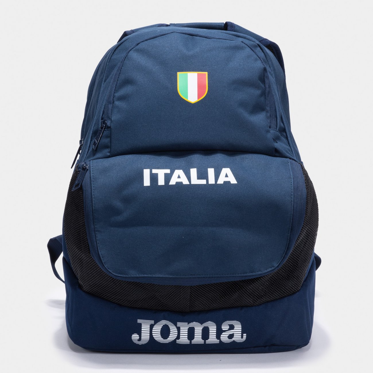 I colori della bandiera italiana sono stampati sulla parte anteriore della borsa. Stampa personalizzata ITALIA. Logo Joma anche serigrafato.