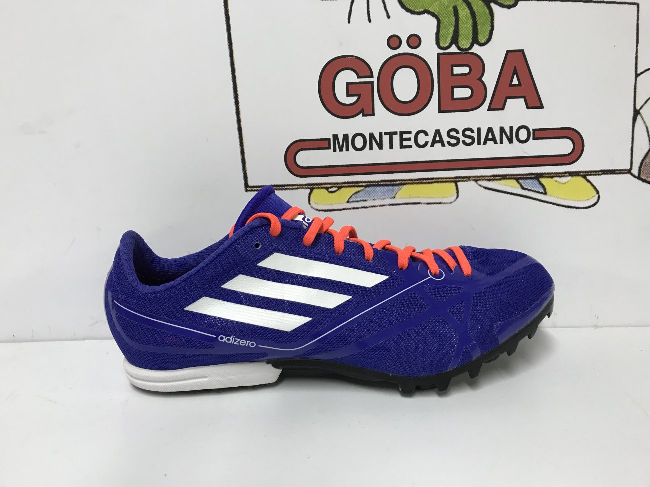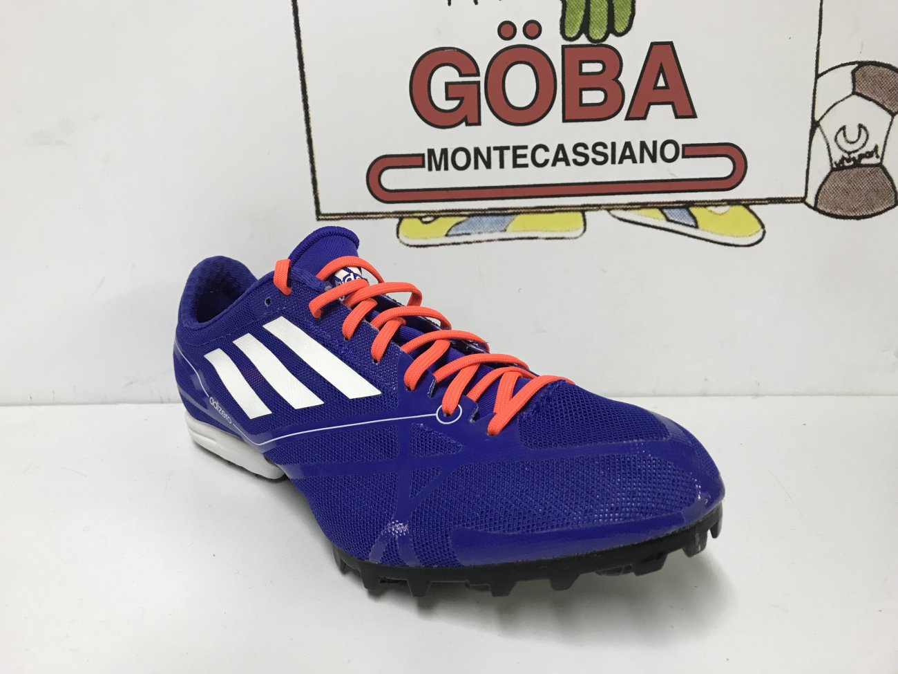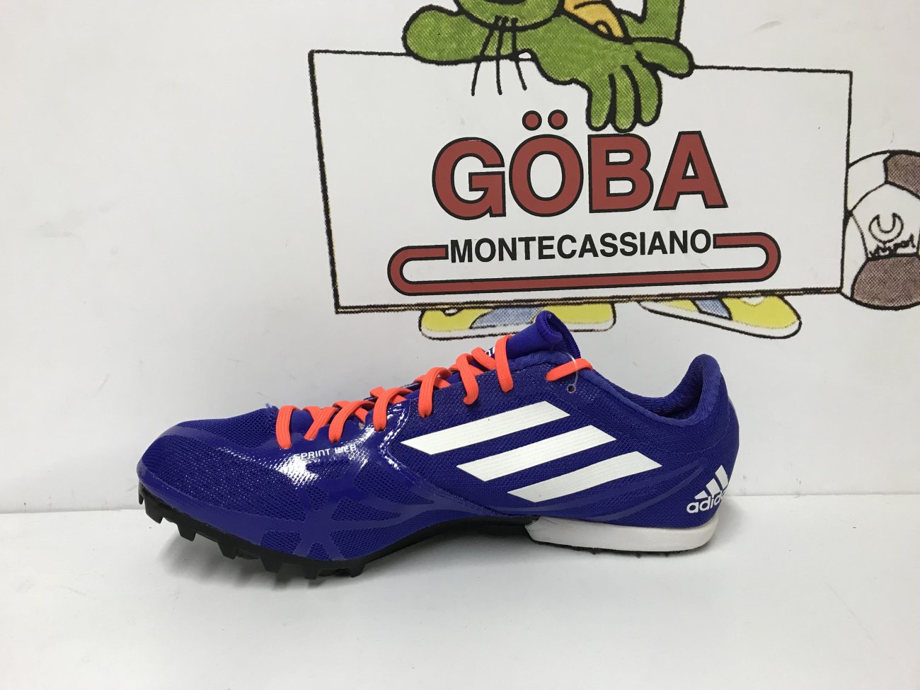 Tomaia realizzata in SpintWeb,in mesh con rifiniture in microfibra,in dotazione due paia di lacci. Plantare in EVA. Intersuola in Eva preformata. Suola composta da i in gomma,piastra in TPUestesa fino a 3/4 e con 6 alloggiamenti per i chiodi. CHIODATA DESTINATA A MEZZOFONDISTI VELOCI ( 400,800 e 1.500 metri) E OSTACOLISTI DI BUON LIVELLO TECNICO.