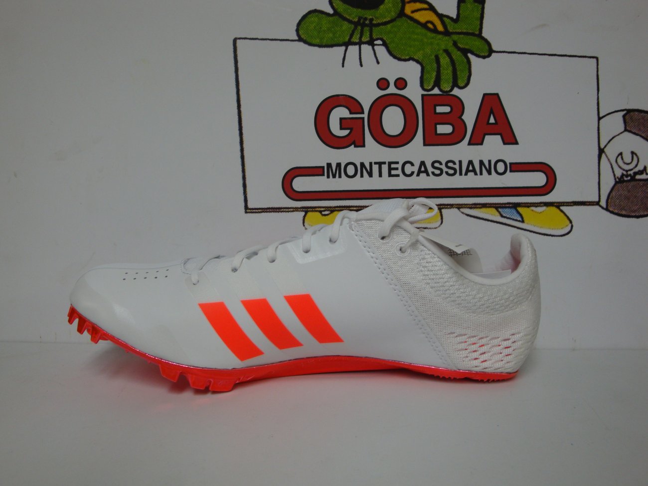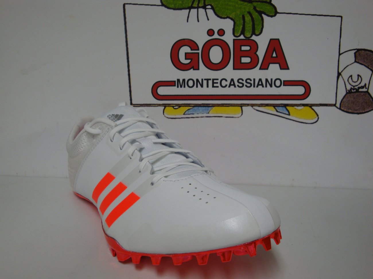 .Tomaia realizzata in pelle sintetica e mesh con rifiniture in microfibra. Plantare in EVA. Intersuola in Eva preformata. Suola in TPU a tutta lunghezza con 6 alloggiamenti per i chiodi. IDEALE PER GARE IN RETTILINEO (100 m) E' DEDICATA A SPRINTER DI ALTO LIVELLO TECNICO PARTICOLARMENTE ESIGENTI.