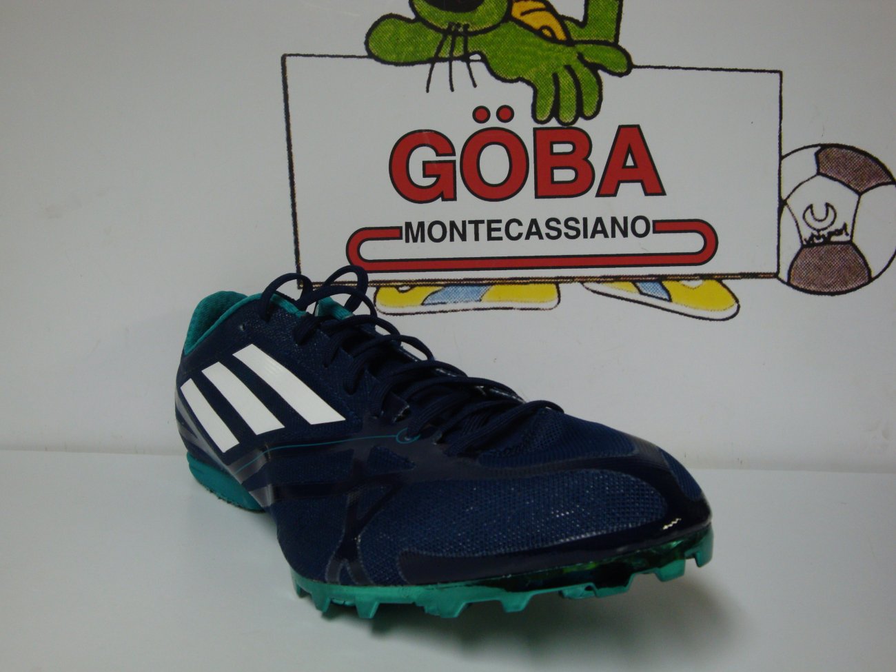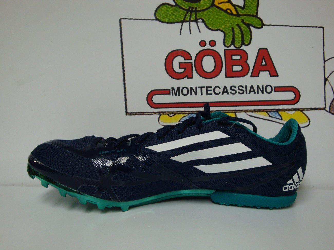 Tomaia realizzata in SpintWeb,in mesh con rifiniture in microfibra,in dotazione due paia di lacci. Plantare in EVA. Intersuola in Eva preformata. Suola composta da i in gomma,piastra in TPUestesa fino a 3/4 e con 6 alloggiamenti per i chiodi. CHIODATA DESTINATA A MEZZOFONDISTI VELOCI ( 400,800 e 1.500 metri) E OSTACOLISTI DI BUON LIVELLO TECNICO.