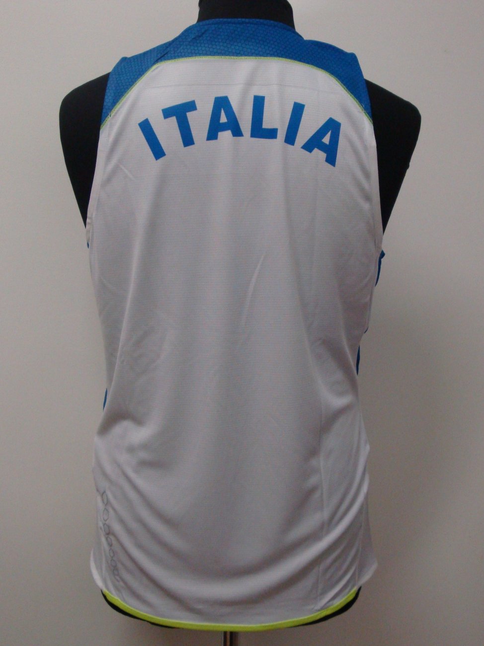 Canotta in poliestere. Stampa rifrangente sul retro. Dettagli fluo in contrasto. Tessuto strutturato su spalle e fianchi. Logo e scritte Italia stampato. Composizione:100% poliestere.