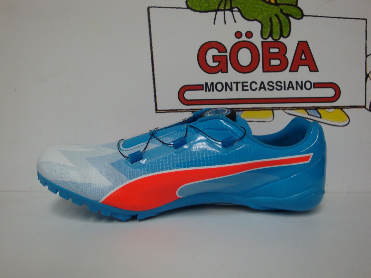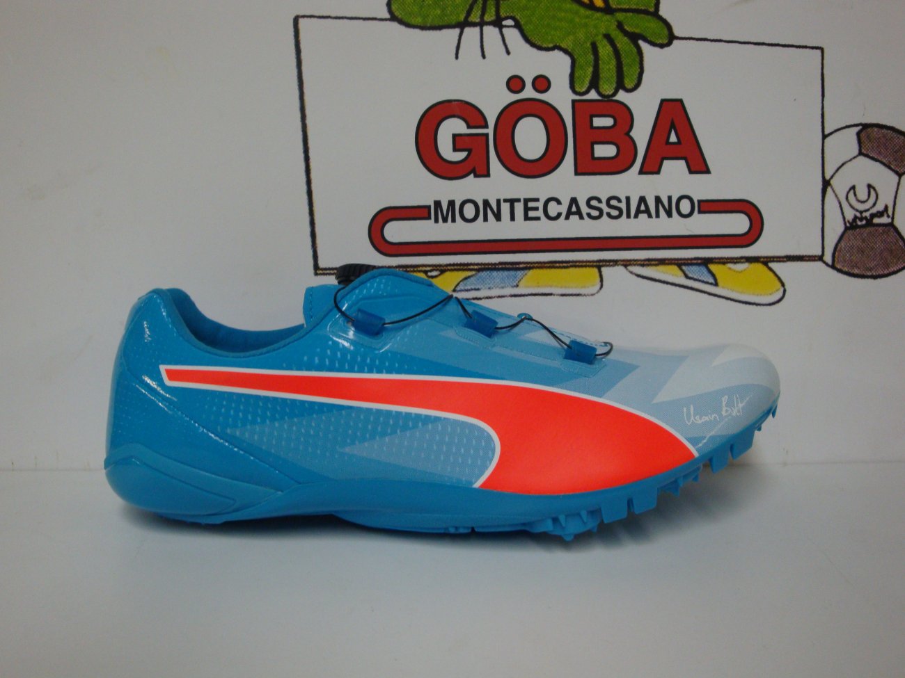 Suola in Pebax a tutta lunghezza con piastra porta chiodi a 8 alloggiamenti.La scarpa utilizzata da USAIN BOLT.