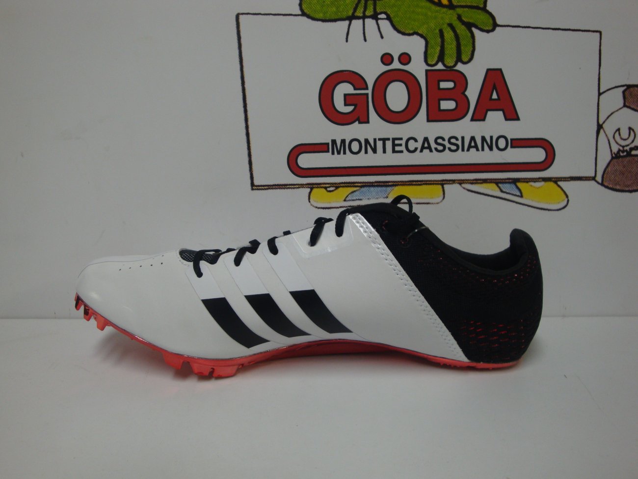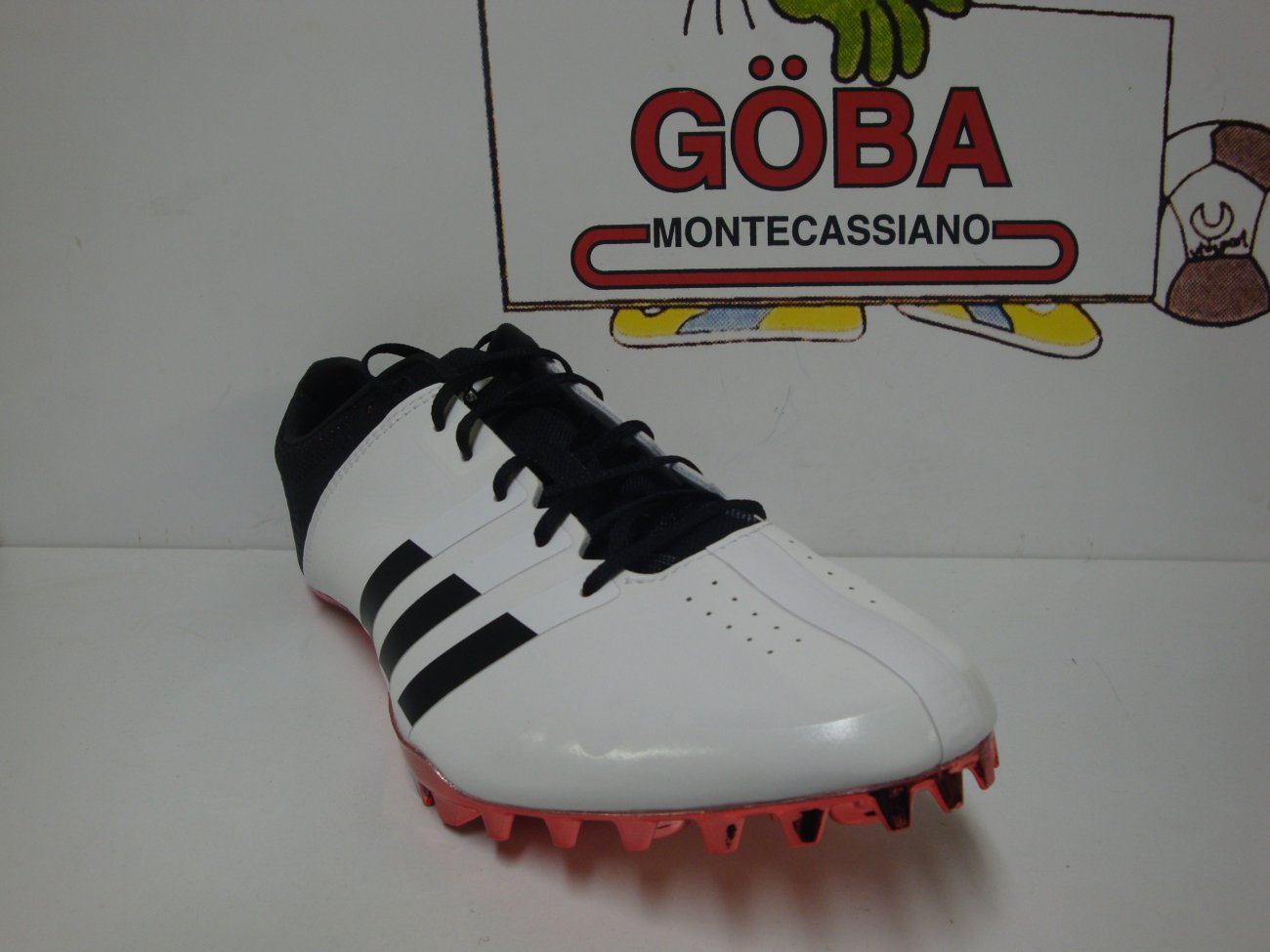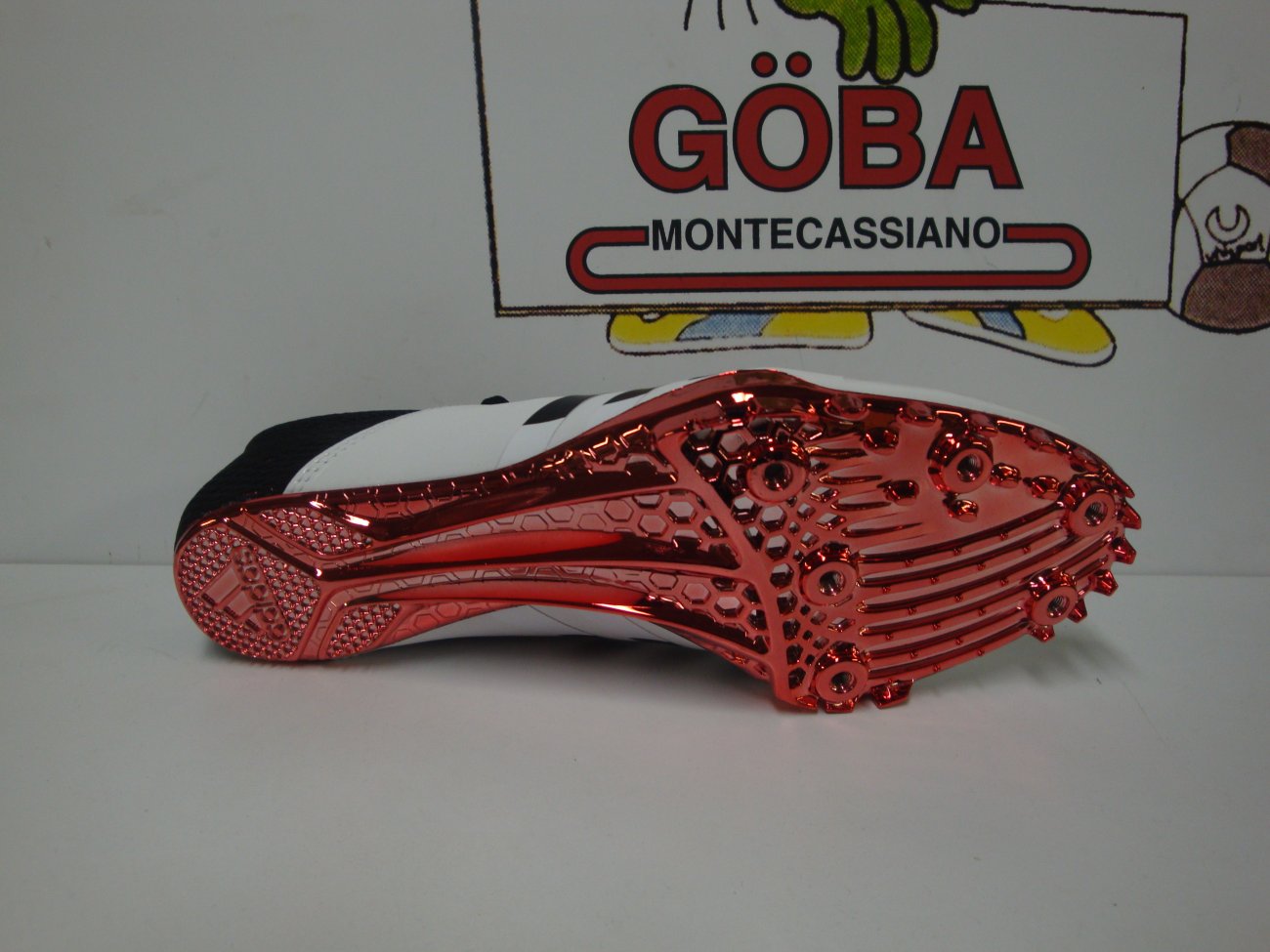 .Tomaia realizzata in pelle sintetica e mesh con rifiniture in microfibra. Plantare in EVA. Intersuola in Eva preformata. Suola in TPU a tutta lunghezza con 6 alloggiamenti per i chiodi. IDEALE PER GARE IN RETTILINEO (100 m) E' DEDICATA A SPRINTER DI ALTO LIVELLO TECNICO PARTICOLARMENTE ESIGENTI.