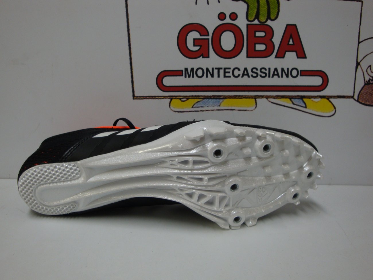 Allacciatura tradizionale supportata con fascia in velcro. Plantare in EVA. Intersuola in Eva preformata. Suola in TPU a tutta lunghezza con 6 alloggiamenti per i chiodi. IDEALE PER GARE IN RETTILINEO (100 m) E' DEDICATA A SPRINTER DI ALTO LIVELLO TECNICO PARTICOLARMENTE ESIGENTI.