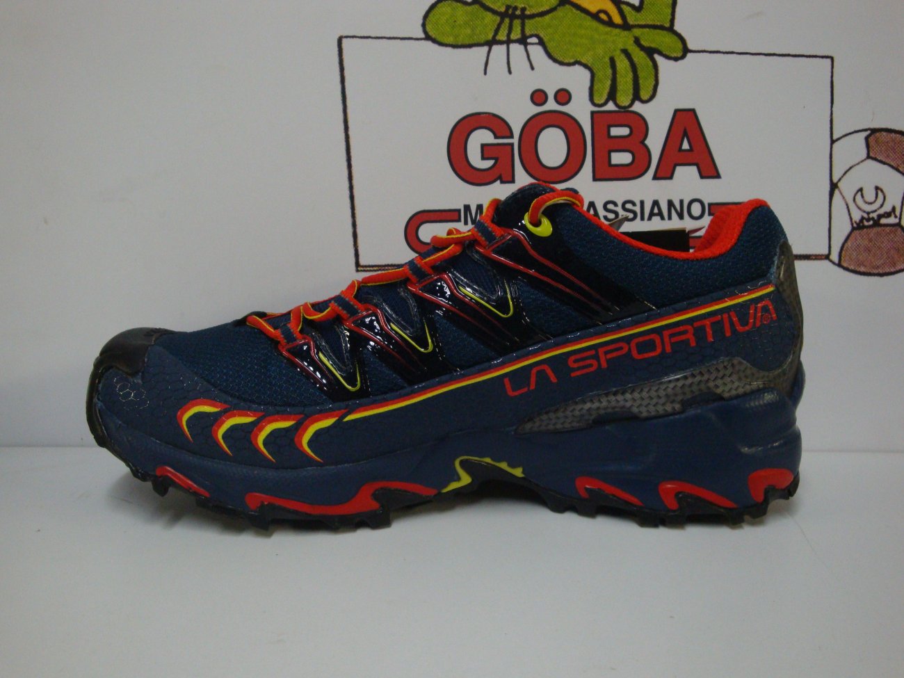 Calzatura in membrana Gore-Tex sviluppata per utilizzi invernali su percorsi off-road di lunga distanza, competizioni ultra-marathon e sessioni di allenamento prolungate. La tomaia ? in mesh anti abrasione traspirante e water repellent, la fodera ? in membrana Gore-Tex Extended Comfort a garanzia di impermeabilit? e traspirabilit?. Il sistema di allacciatura ? integrato alla tomaia a mezzo di fettucce cucite sul tessuto elastico interno e con rinforzi in alta frequenza sul mesh esterno: questo permette di ripartire la tensione dell?allacciatura su tutta la tomaia ed avvolgere meglio il piede per un perfetto comfort di calzata. Ultra Raptor GTX unisce i vantaggi in termini di performance di una costruzione contenitiva a quelli di comfort derivati da una forma comoda e con pianta larga. Il risultato ? un prodotto indossabile per molte ore consecutive ed adatto per utilizzo endurance su qualsiasi tipo di terreno off-road nei mesi invernali o in situazioni di elevata umidit?, grazie alle doti di impermeabilit? della fodera Gore-Tex. Suola ad alta aderenza realizzata in mescola La Sportiva FriXion XF.