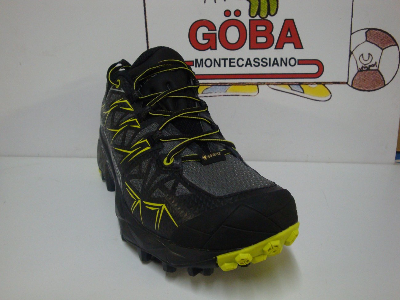TOMAIA in mesh idrorepellente con innesti Flex Guard,applicazioni in microfibra termoadesiva in TPU Microlite Skeleton,rinforzo in TPU sulla punta;membrana Gore-Tex.