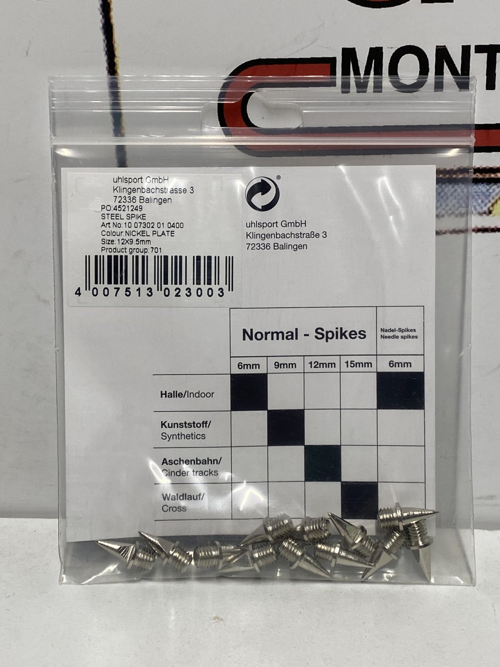 UHLSPORT CHIODI STANDARD PER SCARPE DA ATLETICA 9,5mm