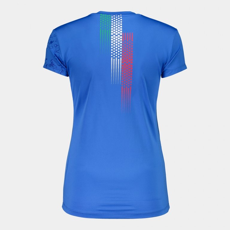T-shirt a maniche corte da donna. Modello da riscaldamento della collezione FIDAL, dotato di tecnologia di regolazione del sudore per far sì che non ti disturbi in nessun momento. Si tratta di una maglia tecnica super leggera e confortevole. Vesti i colori della Federazione Italiana di Atletica Leggera e porta la tua competizione ad un altro livello. Incorpora un girocollo elastico realizzato in tessuto di base per ottenere una vestibilità confortevole al corpo. Il tessuto leggero migliora le prestazioni dell'atleta, poiché sentirai il minimo peso quando la indosserai. Le fibre elastiche ti accompagneranno in tutti i tuoi movimenti lasciandoti totale libertà. Sui lati e sulle ascelle, presenta i della tecnologia Micro-Mesh System, dedicata all'ottimizzazione della traspirazione del sudore. L'umidità rimarrà a bada durante il riscaldamento in modo che la pelle rimanga fresca e asciutta. Inoltre, la comparsa di funghi che causano cattivi odori sarà limitata. Nel design spiccano i colori della FIDAL. Nella metà superiore, colpisce il disegno sul tessuto in printing, che ottiene uno spettacolare effetto ottico infinito. Presenta anche dettagli identitari dell'Italia, come le stampe con i colori della bandiera sulla schiena e sul petto. Logo Joma serigrafato.