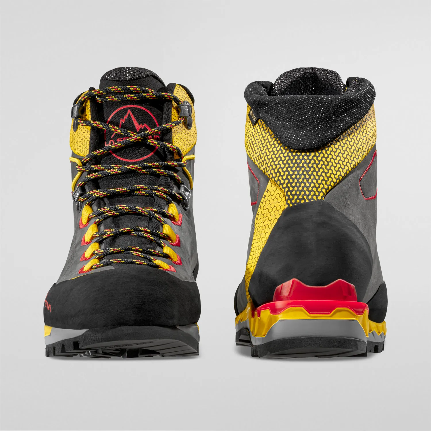 Trango Tech Leather GTX è uno scarponcino in pelle traspirante ed impermeabile pensato per escursionismo alpino: particolarmente leggero, confortevole e durevole grazie alla tomaia in nubuck. Perfetto per avvicinamenti tecnici ed utilizzi lavorativi da parte di soccorritori e guide alpine. La tomaia dal design pulito e moderno ha le cuciture ridotte al minimo per aumentare l’impermeabilità generale. E’ un prodotto ad alta durabilità grazie all’utilizzo di pellami ad alta qualità ed ai riporti protettivi in microfibra sulla tomaia. L’intersuola anti-shock in poliuretano a bassa densità con protective PU-Skin riduce l’impatto con il terreno e favorisce l’uso prolungato del prodotto mentre le protezioni in gomma anti-urto in punta e tallone prevengono dagli impatti con rocce e radici.Come ogni prodotto di La Sportiva Trango Series adotta lo snodo della caviglia 3D-Flex System che favorisce la mobilità e gli appoggi in fase dinamica. La linguella integrata nella tomaia è realizzata in tessuto morbido ed elastico per massimo comfort di calzata esaltato anche dalla forma ergonomica e dal fit avvolgente. La suola La Sportiva Cube by Vibram con spessori alleggeriti permette di ridurre ulteriormente il peso per uno scarponcino da backpacking leggero e moderno.