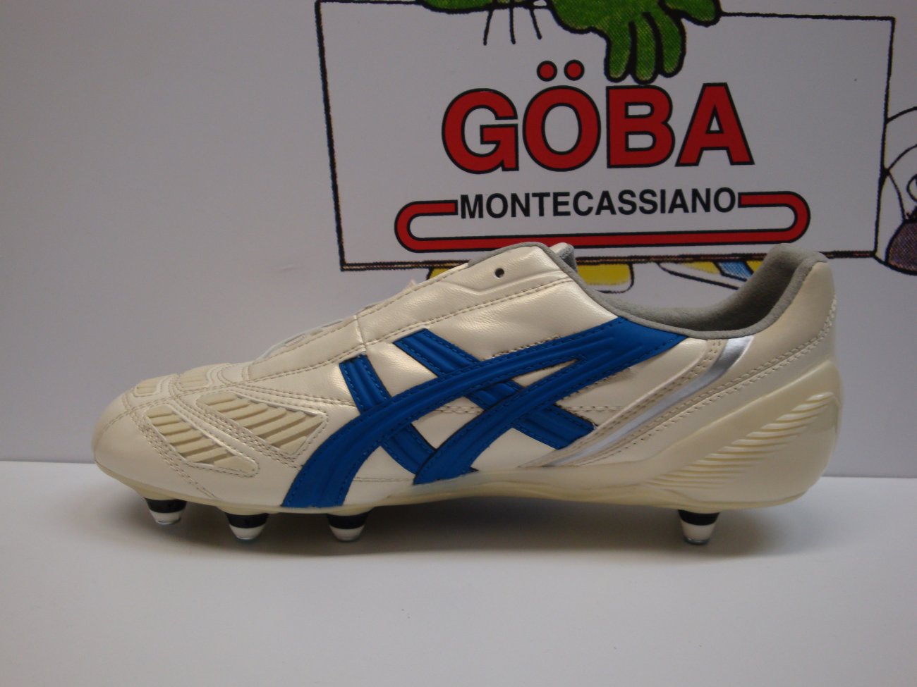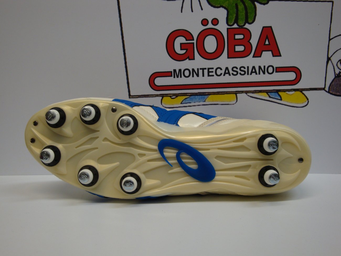 *TOMAIA in microfibra con doppie cuciture di rinforzo e tecnologia DueSole (PU);contrafforte tallonare esterno esteso fino alla zona mediale. *ALLACCIATURA tradizionale trattenuta da fettucce a scomparsa e con linguetta in mesh. *PLANTARE sagomato in SpEVA estraibile. *SUOLA ST in poliuretano,rivettata alla tomaia ,con 8 tacchetti conici intercambiabili.