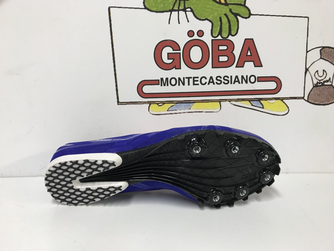 Tomaia realizzata in SpintWeb,in mesh con rifiniture in microfibra,in dotazione due paia di lacci. Plantare in EVA. Intersuola in Eva preformata. Suola composta da i in gomma,piastra in TPUestesa fino a 3/4 e con 6 alloggiamenti per i chiodi. CHIODATA DESTINATA A MEZZOFONDISTI VELOCI ( 400,800 e 1.500 metri) E OSTACOLISTI DI BUON LIVELLO TECNICO.