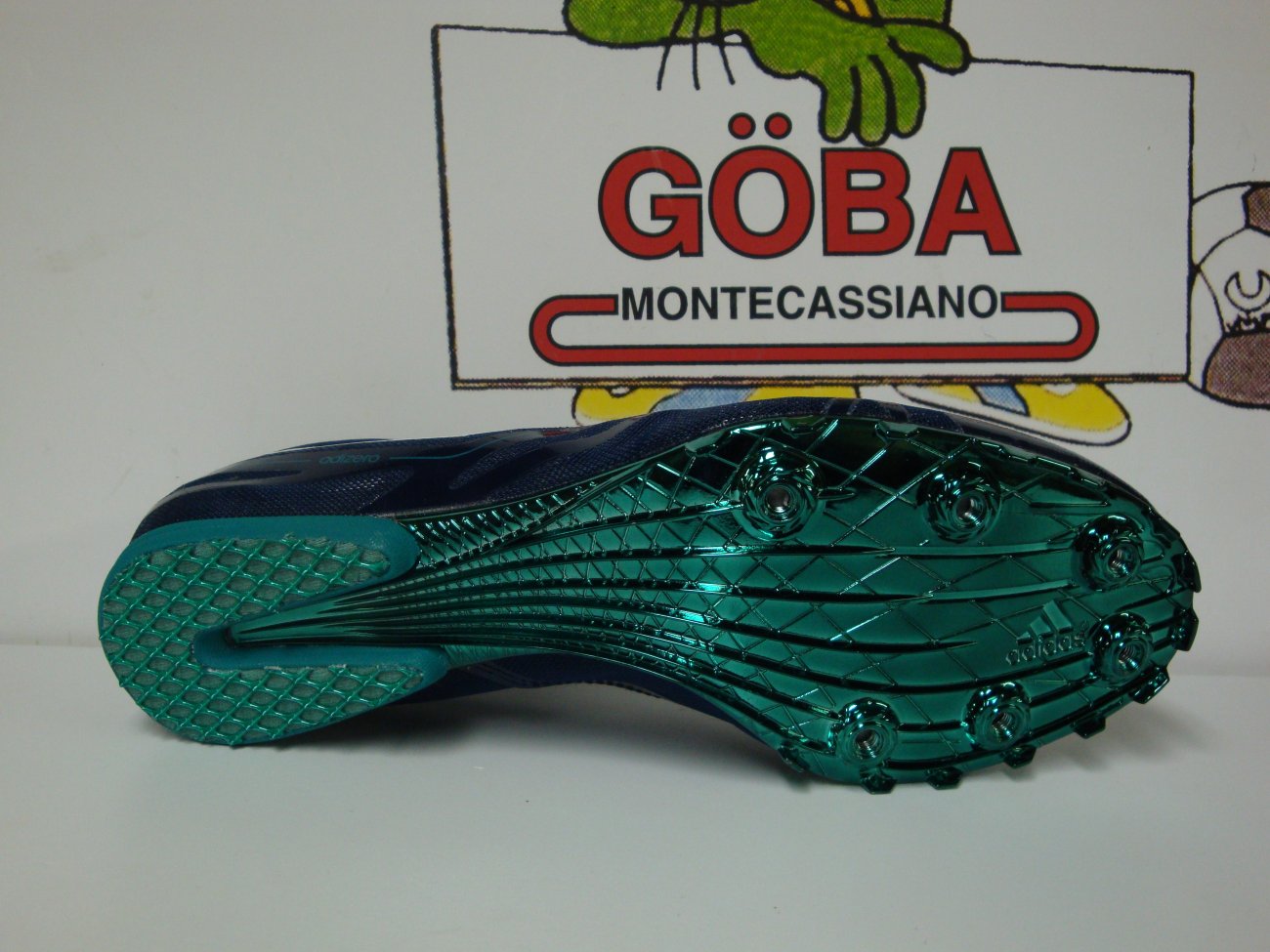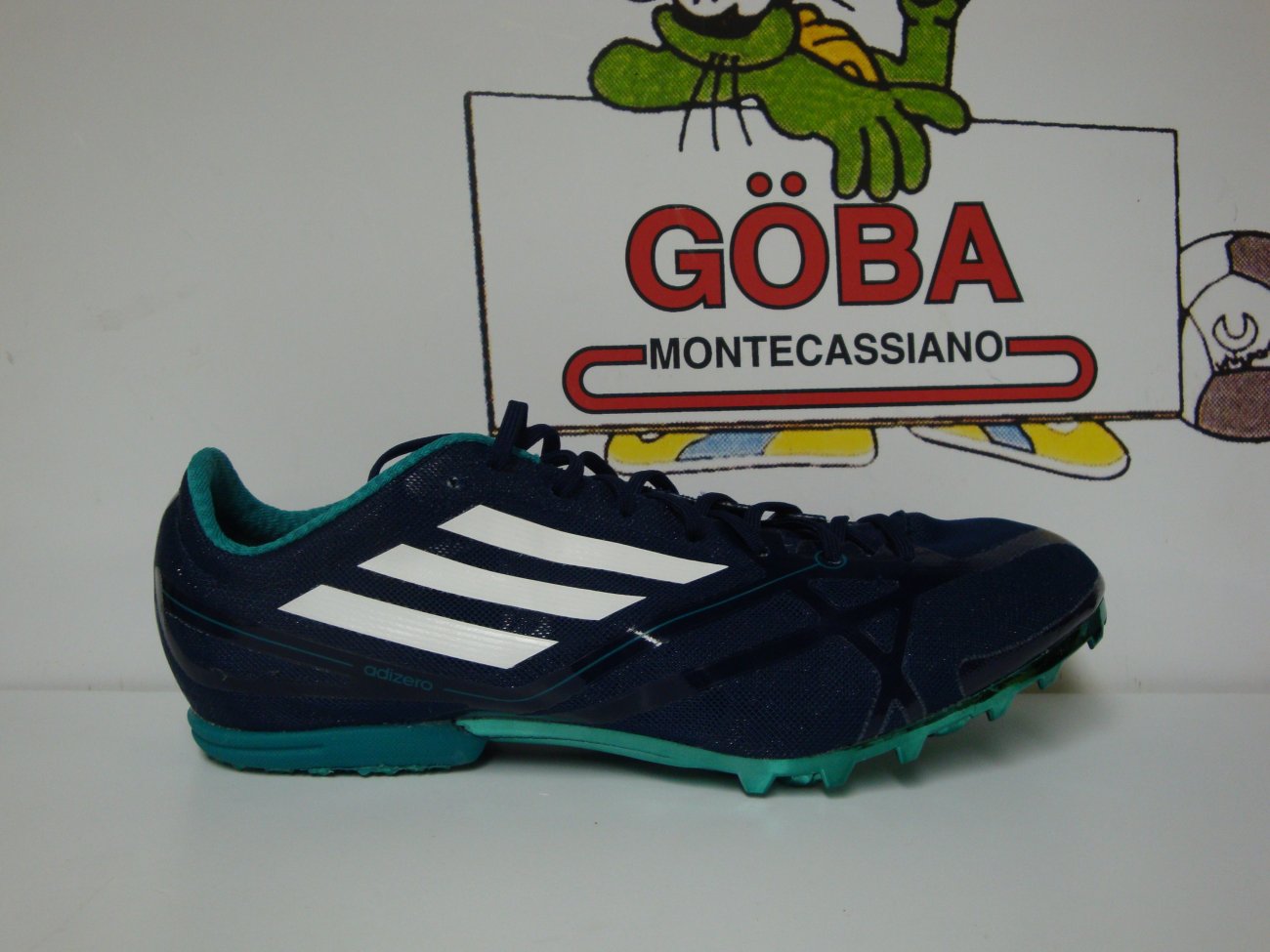 Tomaia realizzata in SpintWeb,in mesh con rifiniture in microfibra,in dotazione due paia di lacci. Plantare in EVA. Intersuola in Eva preformata. Suola composta da i in gomma,piastra in TPUestesa fino a 3/4 e con 6 alloggiamenti per i chiodi. CHIODATA DESTINATA A MEZZOFONDISTI VELOCI ( 400,800 e 1.500 metri) E OSTACOLISTI DI BUON LIVELLO TECNICO.