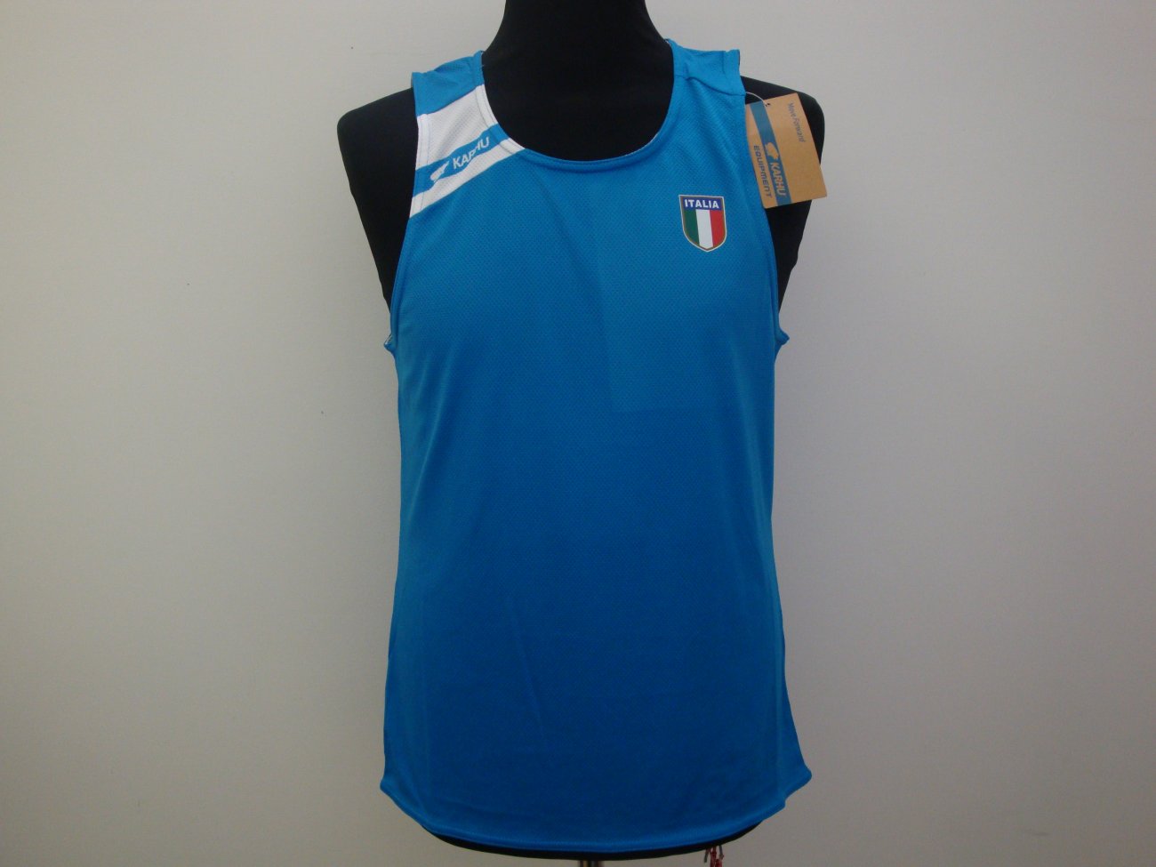 Canotta da gara. Logo e scritte Italia stampato in sublimatico.Composizione:50% Cooldry - 50% Poliestere.