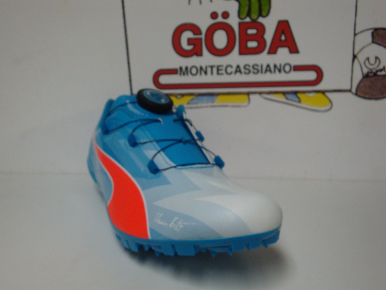 Suola in Pebax a tutta lunghezza con piastra porta chiodi a 8 alloggiamenti.La scarpa utilizzata da USAIN BOLT.